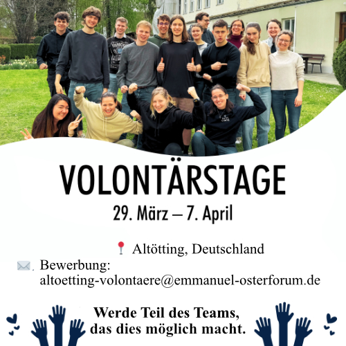 Ein actiongeladenes Programm mit jungen Freiwilligen aus aller Welt zur Vorbereitung des Osterforums. Kontakt: sekretariat@forum-altoetting.de